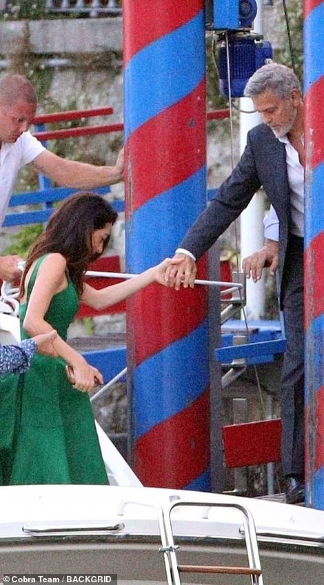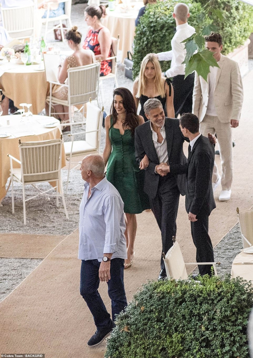 فظهر الثنائي في فندق Villa D'este من مساء يوم الأحد الماضي، وهما يمسكان بأيدي بعضهما البعض، بعيداً عن أطفالهما، وقد انضما إلى والدة أمل بارعة وأصدقائها لتناول وجبة العشاء.