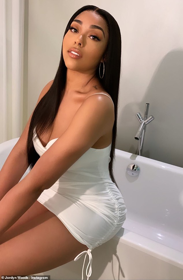 شاركت "جوردن وودز"، البالغة من العمر 20 عامًا، متابعيها عبر موقع "إنستغرام" سلسلة صورٍ مثيرة لها جالسةً على حافة حوض الاستحمام مُستعرضةً منحنيات جسدها ومفاتنها بفستان أبيض سترابلس قصيرر للغاية، في حين أسدلت شعرها الأسود الحريري على جانبي كتفها، وطبَّقت مكياج من درجات النود ورسمت عينيها على شكل قطة.