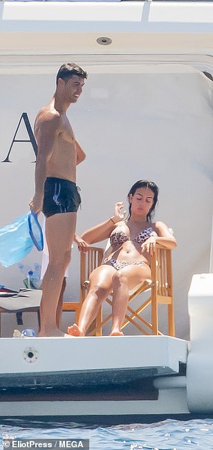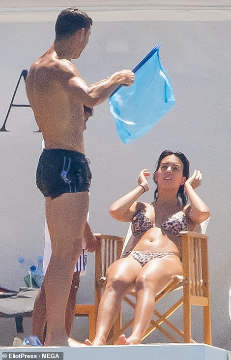 وظهرت عارضة الازياء جورجينا بإطلالة مثيرة، حيث ارتدت بكيني بنقشة جلد النمر، بينما كانت تستلقي على كرسي في اليخت تحت أشعة الشمس، تواصل تسمير البشرة، في حين كان كريستيانو يقف أمامها وهو يظهر عضلاته بإرتدائه شورت سباحة فقط.