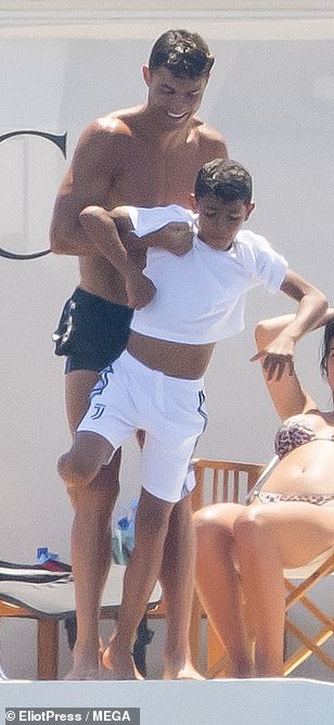 وانضم إليهما ابنهما جونيور كريستيانو، حيث كان والده يمازحه بإلقائه من أعلى اليخت.