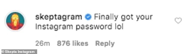 ووفق ما نقله موقع "ديلي ميل" البريطاني، يُعتقد أن مغني الراب "سكيبتا" عمل على اختراق حسابها ونشر هذه الصور، حيث علَّق على المنشور: "أخيرًا حصلت على كلمة سر حساب الانستغرام خاصتك".