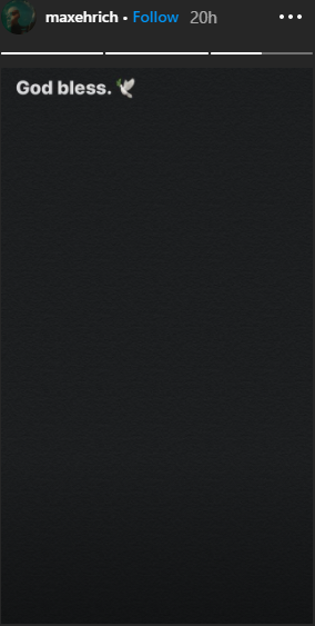 وأشار "ماكس" أن الأخبار وصلته أثناء تصويره فيلم عن سيرة ذاتية لقس في كنيسة مسيحية هدفه مساعدة الناس، وأنهى منشوره بكلمة "في أمان الله" وإيموجي على شكل حمامة سلام.