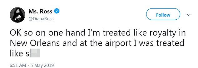 كشفت المغنية "ديانا روس" في سلسلة من التغريدات عبر حسابها الخاص على "تويتر"، أنها تعرضت للتحرّش من قبل مفتشة مطار نيو أورليانز، التي لمستها بين ساقيها وهي تفتّشها، وذلك عقب أدائها في مهرجان نيو أورليانز الغنائي للجاز والتراث، خلال عطلة نهاية الأسبوع الماضية.
