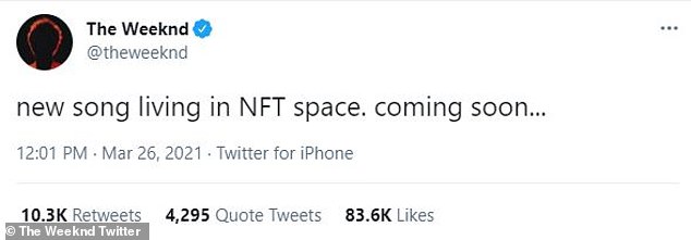 وكتب ذا ويكند: "أغنية جديدة تعيش في فضاء NFT قريباً"، حيث ترمز NFT إلى الرمز غير القابل للاستبدال وهي عبارة عن سوق ناشئة داخل blockchain حيث يبيع المشاهير سلعهم الفريدة وأعمالهم.