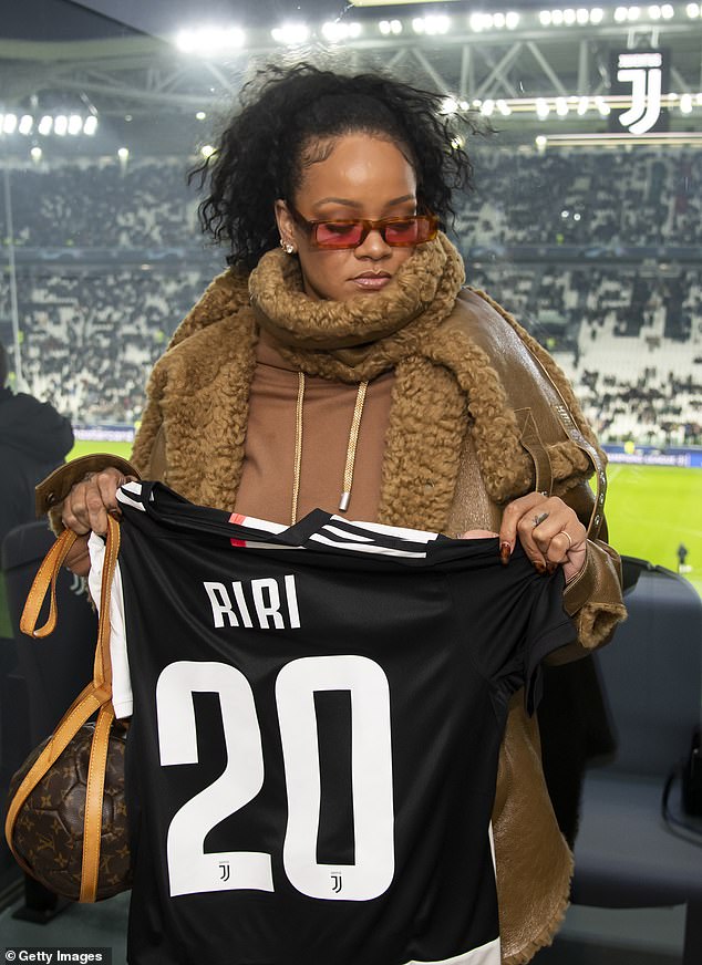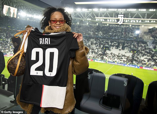 وأعربت "ريهانا" عن حماستها ممسكة تيشيرت نادي " يوفنتوس" مطبوع عليه لقبها "ريري"، أثناء تواجدها في غرفة الشخصيات الخاصة.