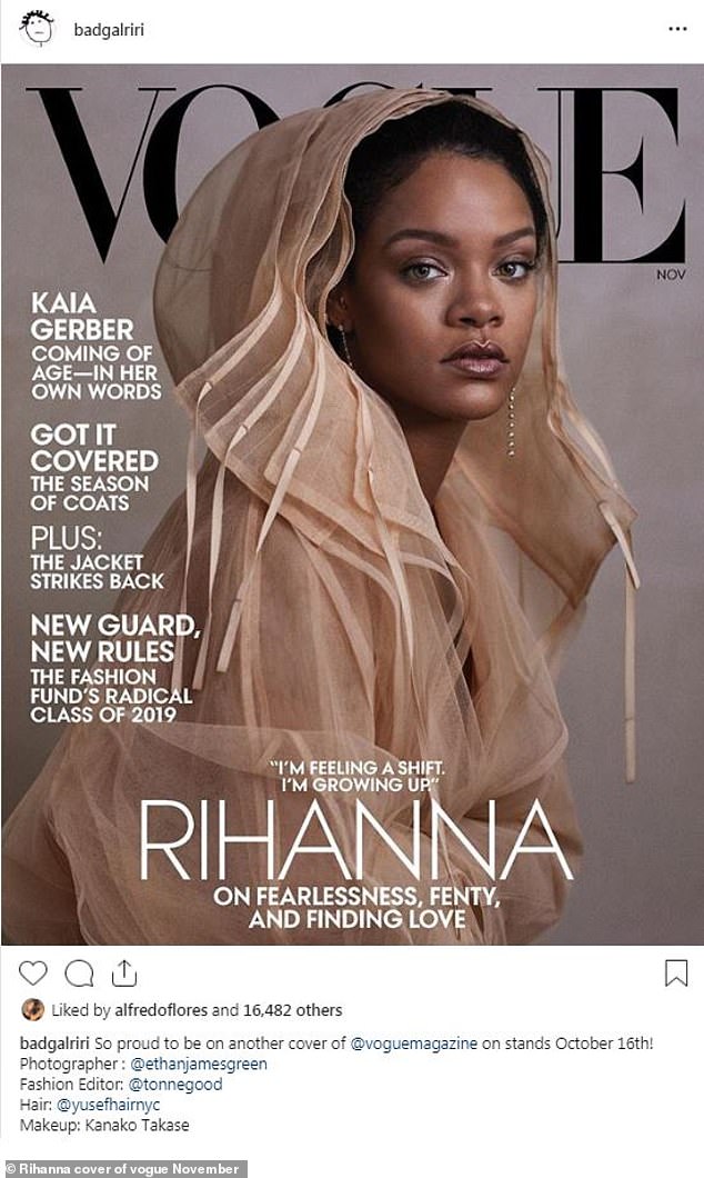 اُختيرت النجمة ريهانا نجمة غلاف عدد شهر نوفمبر لمجلة "فوغ"، والذي تكشف فيه عن العديد من الأمور، من الناحية الفنية والشخصية، وحتى السياسية.