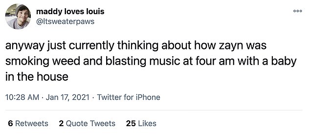 وتساءل البعض إذا ما كان "زين" برفقة حبيبته عارضة الأزياء الأمريكية ذات الأصول الفلسطينية "جيجي حديد" وطفلتها، فعلَّق أحدهم: "لماذا يصل زين مالك حد الانتشاء، ويشعل السجائر، ويشغل الموسيقى في الساعة السادسة صباحًا بينما تتواجد طفلة في منزله؟"
