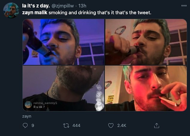 وتحدَّث "زين مالك"، الذي أصبح أبًا، مع معجبيه حوالي الساعة السادسة صباحًا بتوقيت مدينة نيويورك، وأثناء تشغيله بعض مقاطع أغنيته الجديدة Nobody is Listening، أشعل سيجارة وأخذ رشفة من قنينة المشروب، ثم تناول شريحة بيتزا، الأمر الذي أثار غضب رواد مواقع التواصل الاجتماعي.