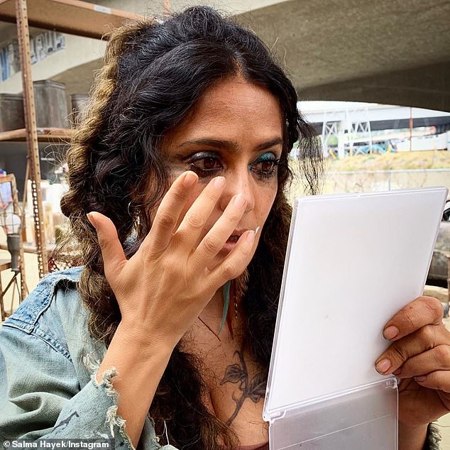 ونشرت "حايك" ذات الخمسين عامًا صورة لها عبر موقع "إنستغرام" أثناء وضعها مستحضرات التجميل، فتظهر في حالة فوضى بمكياج عيون غامق وكثير من كحل العينين، وعلَّقت بالإسبانية: "كيف حال مكياجي؟"