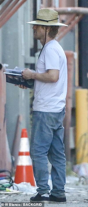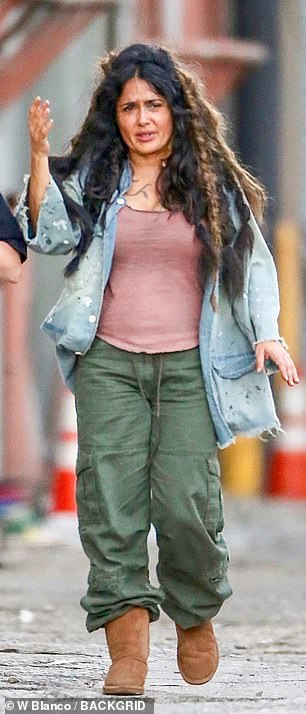 شوهدت "سلمى حايك" تسير إلى جانب مساعدة الإخراج بإطلالة شعثاء في موقع تصوير فيلمها الجديد "Bliss" يوم الثلاثاء الماضي، الذي يدور حول إطار الخيال العلمي، فأسدلت شعرها البني الكثيف الأشعث على جانبي كتفها والذي زُيِّنَ بجدائل شقراء، في حين اختارت ارتداء تيشيرت بني محمر وفوقه اختارت قميص جينز أزرق فاتح نسَّقته ببنطال باغي زيتي، وفي قدمها انتعلت آغز بني.