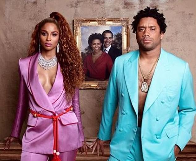 كذلك أطل راسيل بالبدلة الزرقاء الفاتحة التي ارتداها جي زي في الصورة ذاتها، مع سلسلة من الذهب العريض، وصفف شعره بنفس طريقة جي زي اللافتة، وعدلا الزوجين من خلفية الصورة، واستبدلا صورة الموناليزا لليوناردو دافينشي بصورة باراك أوباما.