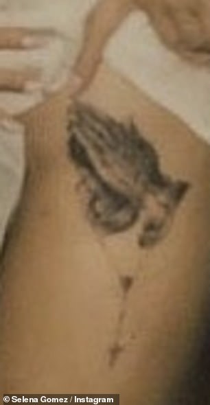 وبدا واضحاً بأن الوشم الذي حصلت عليه سيلينا يشبه إلى حد كبير الوشم على كاحل صديقها السابق جاستين، فكان عبارة عن يدان كأنهما تصليان وهي مثبتة بمسبحة حول الرسغين، أما جاستين فكان لديه واحد مشابه تماماً حول كاحله.
