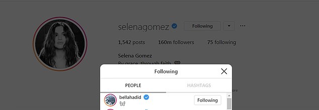 ولاحظ رواد مواقع التواصل الاجتماعي أن "بيلا حديد" لم تعاود متابعة "سيلينا" بعد، رغم أنها أبدت إعجابها بإحدى صورها بالعودة لشهر مايو الماضي.