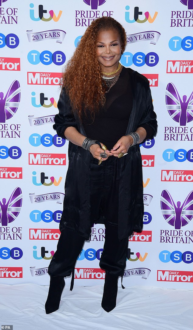 تألقت المغنية الأمريكية جانيت جاكسون بثوب باللون الأسود مع بعض الأكسسوارات  من السلاسل والأساور الفضية والملونة وتسريحة شعرها الكيرلي المعهودة.
