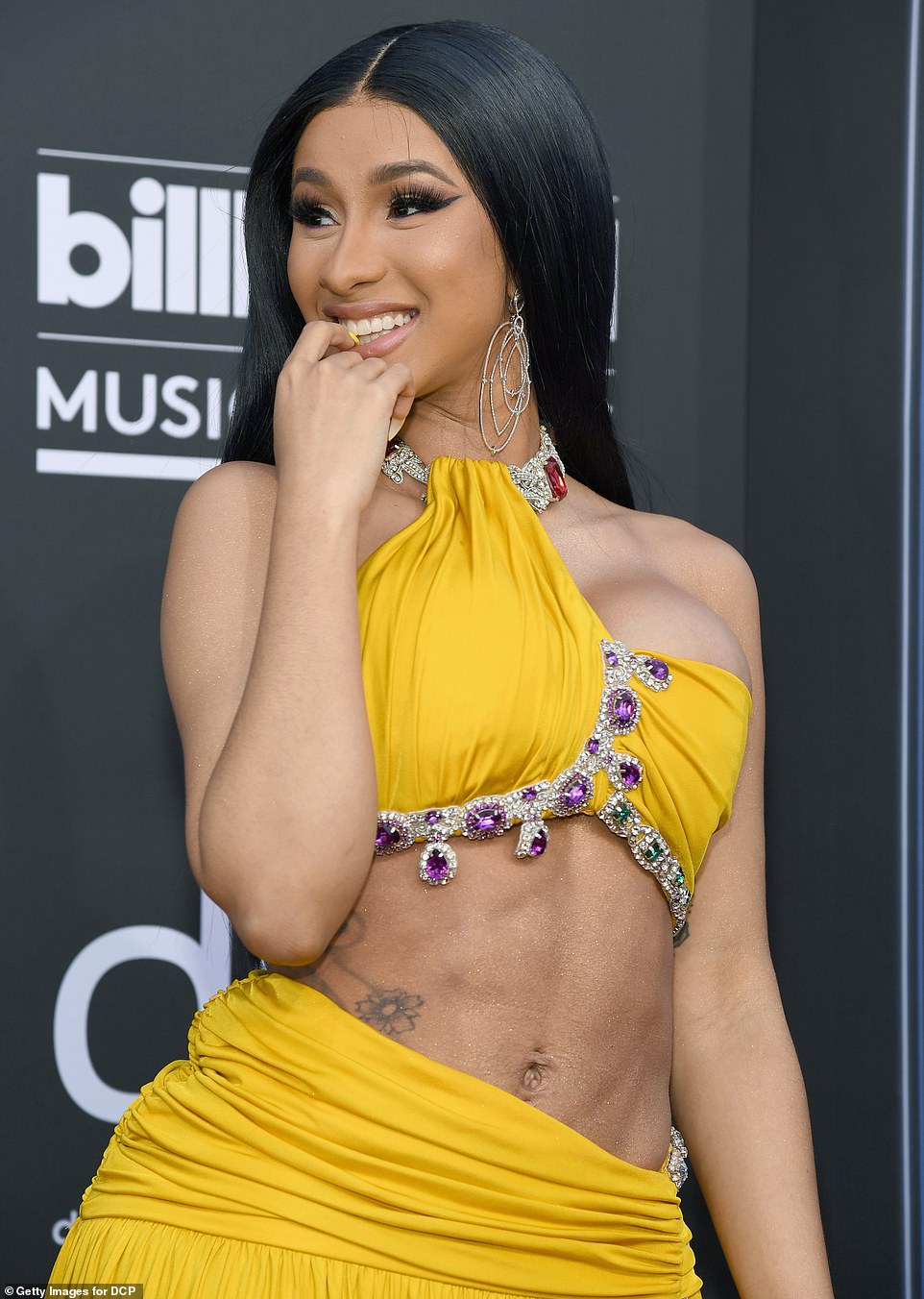 بدت نجمة الراب الأمريكية كراقصة شرقية بلباسها الأصفر من توقيع العلامة التجارية الإيطالية " Moschino" المؤلف من قطعتين، تنورة طويلة بفتحة طويلة تصل للفخد، وتوب أصفر مُزيَّن بالمجوهرات وقطع الألماس والأحجار الكريمة الملونة، حيث استعرض عملية تكبير صدرها التي أجرتها مؤخرًا.