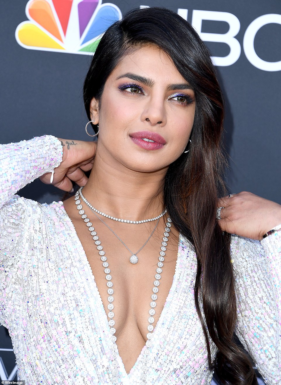 وأكملت "شوبرا" إطلالتها بعد قلائد مُرصَّعة بالألماس، وسرَّحت شعرها بشكل جانبي، في حين ابرزت ملامحها الجذابة بظلال عيون باللونين الفضي والأرجواني وأحمر شفاه وردي.
