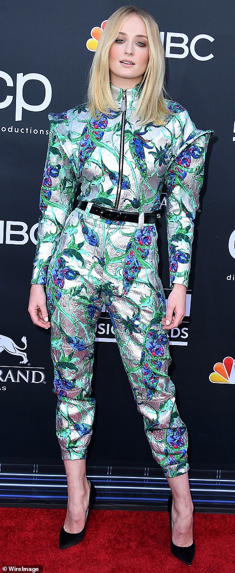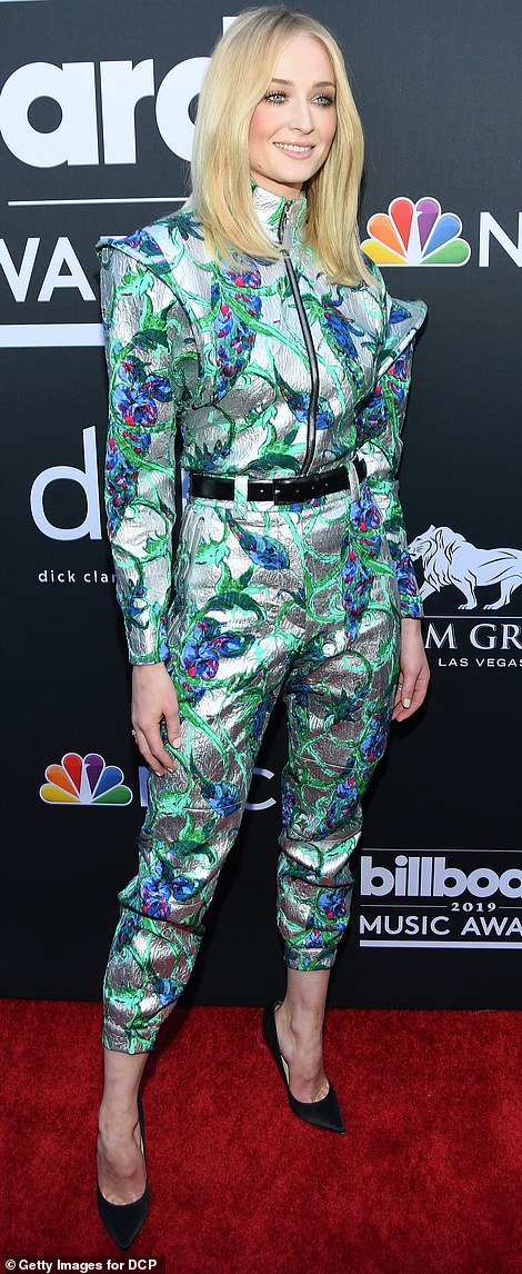 تألَّقت الممثلة الحسناء مُرتدية زي مكوَّن من سترة وبنطال ذي خصر عالٍ من دار أزياء "لويس فيتون"، جاء بطبعات ملونة بالفضي والأزرق والأخضر.