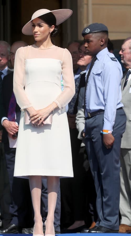 في الحدث الأول بعد زواجها من "هاري"، ارتدت هذا الفستان الوردي الرائع لحفل أقيم في الحديقة.