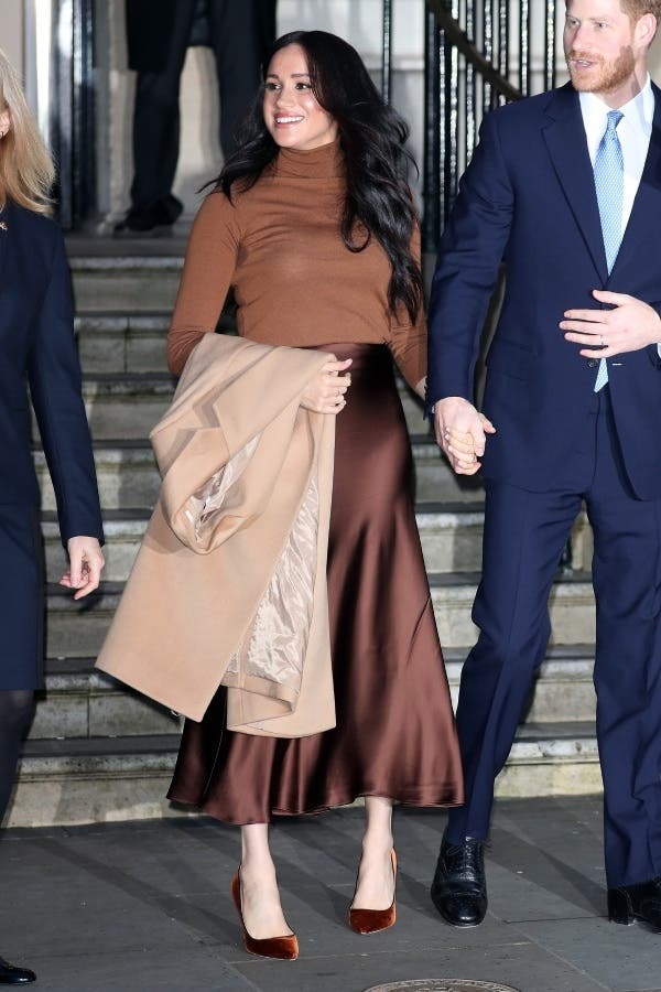 بعد قضاء ستة أشهر خارج الحياة الملكية، اختارت "ميغان" هذه الإطلالة البنية الرائعة.