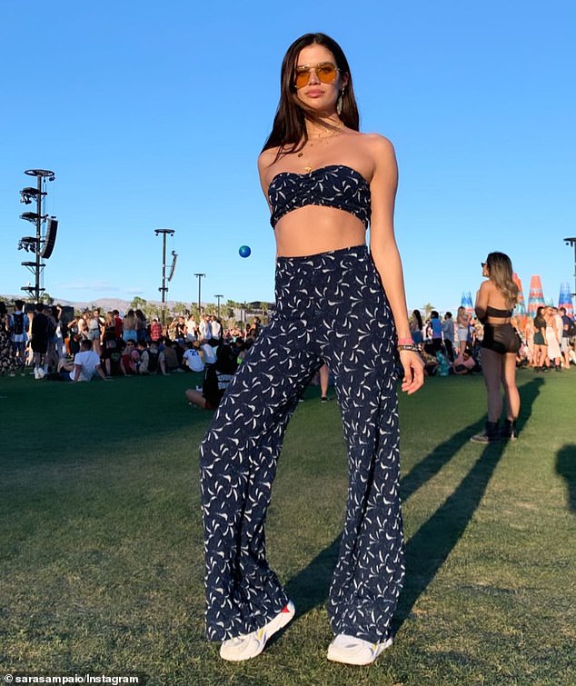 بالإضافة إلى أليساندرا، حضرت العارضة البرتغالية سارة سامبايو إلى المهرجان، وكشفت عن رشاقتها بكروب توب قصير جدًا يشبه حمالة الصدر، وبنطلون ذو أرجل واسعة، في إطلالة شبابية جذابة تميزت بنقشة بالكحلي والأبيض.