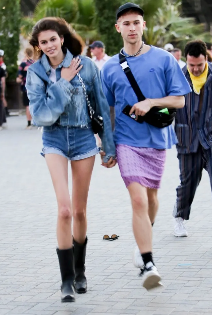 اعتمدت العارضة الصاعدة ذات الـ 17 عامًا، إطلالة عصرية بطلها الجينز كشفت عن رشاقة ساقيها الطويلتين، وحضرت مع صديقها الممثل الأمريكي تومي دورفمان، الذي ارتدي تنورة قصيرة!