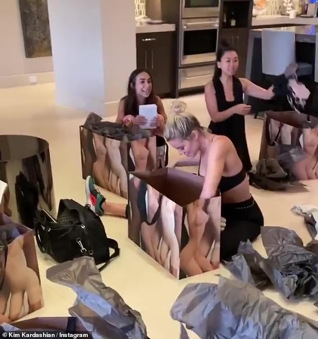 وانتشر مقطع للفيديو لصديقات كيم وهن يفتحن الهدايا ويشاهدن ماذا أحضرت لهن صديقتهن المفضلة في عيد مولدها الـ39، وتضمنت الهدايا العديد من المنتحات النسائية والعطور والجوارب الجديدة من ماركة Skim.