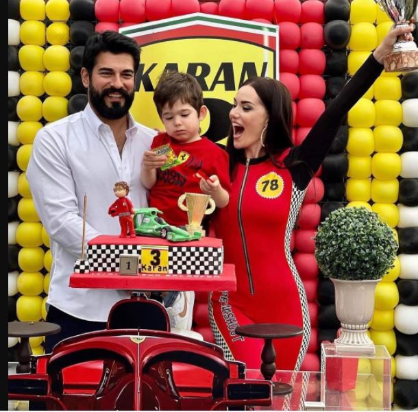 شعار فيراري وسباق سيارات.. بوراك أوزجفيت وفهرية أفجين يحتفلان بعيد ميلاد ابنهما بطريقة لطيفة