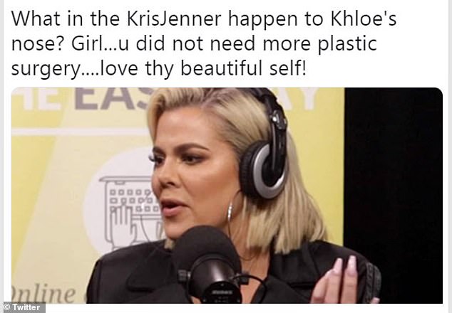 وانتقل المعجبون إلى مواقع التواصل الاجتماعي للتعليق على ذلك، فغرّد أحدهم "ماذا حصل لأنف كلوي؟"، بينما علّق آخر "يا فتاة لم تكوني بحاجة إلى المزيد من عمليات التجميل، أحبي نفسك الجميلة كما أنت".
