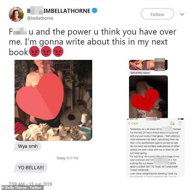 وعلّقت بيلا بجانب الصورة قائلةً: "اذهب للجحيم انت والقوة التي تعتقد بأنها لديك"، كما أضافت: "لفترة طويلة أترك لهذا الرجل فرصة لاستغلالي عدة مرات، لكني بدأت الآن أشعر بالملل منه".