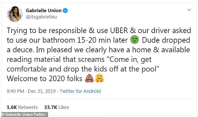 تعرَّضت النجمة الأمريكية "غابرييلي يونيون" وزوجها نجم الدوري الأمريكي للمحترفين "دواين ويد" لموقف محرج عشية رأي السنة بسبب سائق "أوبر" أراد استخدام حمامهما.