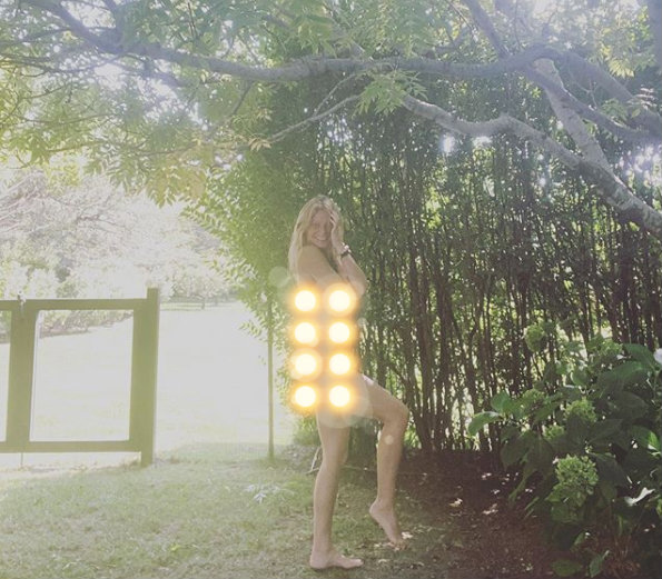 وشاركت "غوينيث بالترو" متابعيها الذي يبلغ عددهم أكثر من 7.3 مليون متابع على موقع "إنستغرام" صورة لها عاريةً تمامًا في حديقة منزلها مُستعرضةً جمالها الطبيعي ومنحنيات جسدها الممشوق، فرفعت إحدى قدميها عاليًا بعد غطت صدرها بكلتا يديها، وأسدلت خصلات شعرها الأشعر المبعثر على جانبي كتفها.
