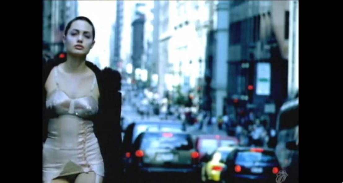حاولت أنجلينا شق طريقها في عالم هوليوود وبدأت كعارضة وظهرت في عدة كليبات، مثل Rock And Roll Dreams Come Through للفنان "ميت لوف"، بالإضافة إلى كليب Stand by My Woman للمغني "ليني كرافيتز" وغيرها، قبل أن تحصل على أولى أدوارها في فيلم "هاكرز" Hackers، ثم توالت أعمالها العديدة الفنية حتى يومنا هذا.
