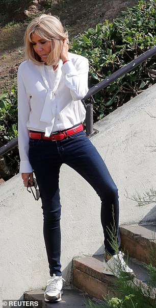 ففي البداية تجوّلت بريجيت برفقة زوجات رؤساء القمة السابعة بما فيهم ميلانيا ترامب، في قرية باسكي القريبة، حيث كانت ترتدي فستان أحمر ناعم، نسّقته مع حذاء من مجموعة Louis Vuitton.