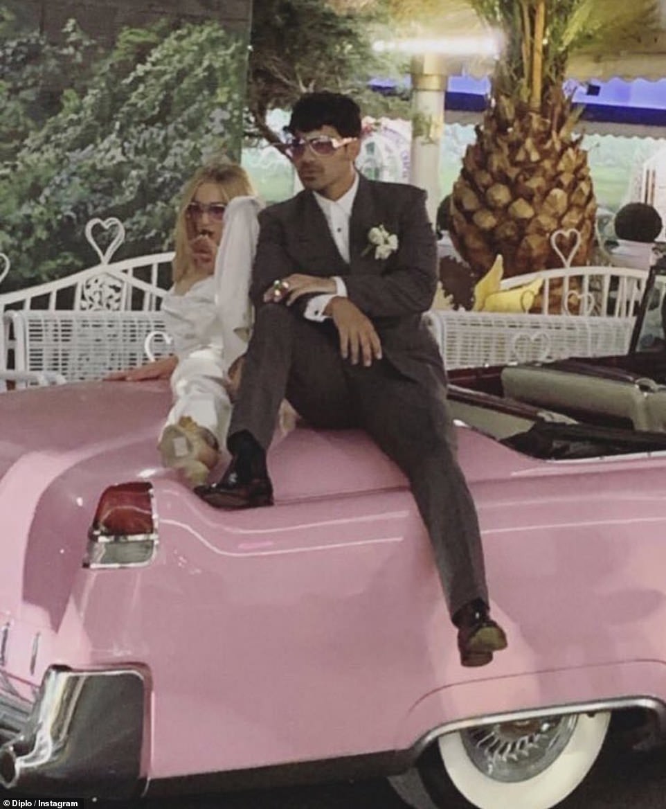 رصدت عدسات الباباراتزي الزوجان الحديثان يتداعبنا على متن يخت فاخر يوم الأحدا الماضي، فنرى "صوفي تيرنر" (23 عامًا) مُستلقيةً في حضن حبيبها الوسيم، بينما يطبع الأخير قُبلة على وجنتها ويعانقها بلطف.