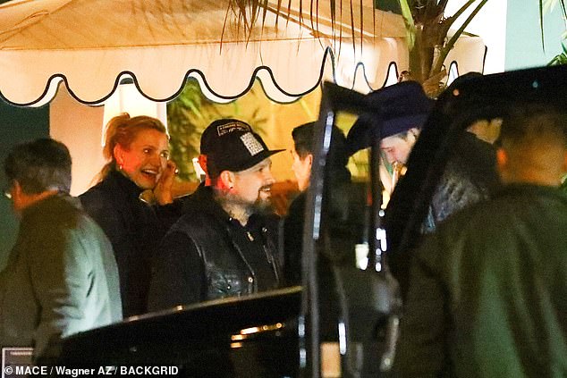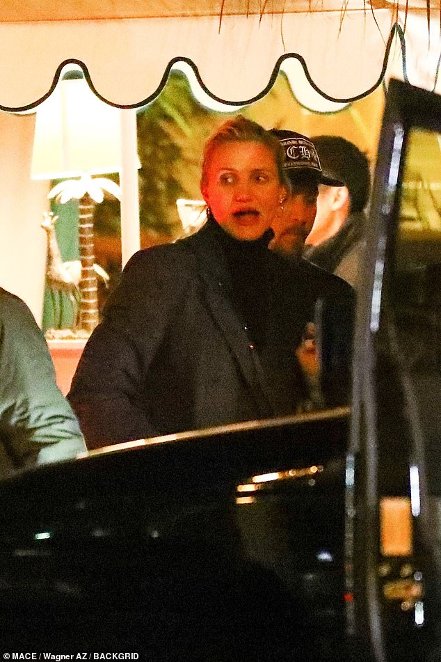 كانت كاميرون تتناول العشاء في مطعم The Bungalow برفقة زوجها والموسيقي جويل وشقيقه التوأم حيث كانت تبتسم وتستمتع بوقتها.