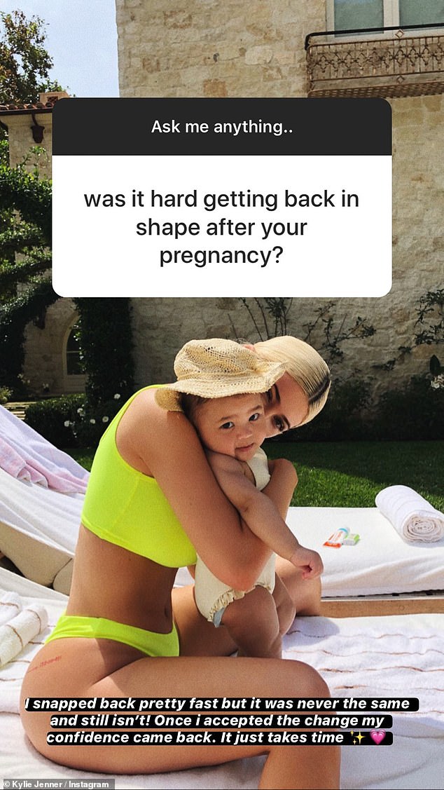 ولدت كايلي طفلتها ستورمي أوائل العام الماضي، من صديقها السابق ترافيس سكوت، وبحسب صحيفة ديلي ميل البريطانية، نشرت كايلي صورها الجديدة بصحبة ابنتها ستورمي، مرتدية مايوه بكيني باللون الأخضر المشع، والذي يظهر علامات التمدد بوضوح على ثدييها وفخذيها والمؤخرة كذلك.