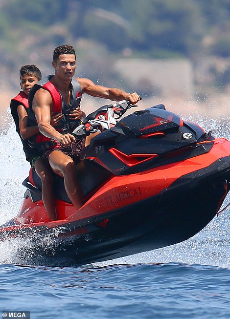 استغل النجم لاعب كرة القدم "كريستيانو رونالدو" لحظات المتعة مع ابنه جونيور كريستيانو وحبيبته جورجينا رودريغز، على متن أحد اليخوت، قبالة ساحل سانت ترووبيز، يوم أمس الأحد، حيث كان اليخت يجوب الريفيرا الفرنسية تحت أشعة الشمس الحارقة.