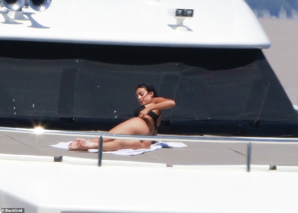 ومع ارتفاع درجات الحرارة، استمتعت جورجينا بأشعة الشمس وهي ترتدي البكيني الأسود، وتضع نظارة شمسية سوداء، بينما كانت تسترخي على منشفة بيضاء على سطح اليخت.