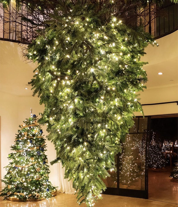شاركت "كورتني كارداشيان" متابعيها عبر موقع "إنستغرام" صورة لشجرة عيد الميلاد الضخمة التي وضعتها رأسًا على عقب وزينتها بالكثير من الأضواء.