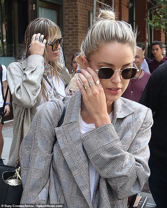 وبدت مايلي منعشة بتسريحة الشعر المبلول وجاكيتها الرمادي العريض مع بنطال رياضي وحذاء مطابق، أما كيتلين فقد كانت ترتدي بليزر بالأبيض والأسود ونظارة شمسية واعتمدت تسريحة الكعكة المرتفعة، كما حاولت إظهار الخاتم الذي يبدو بأن مايلي ألبستها إياه.