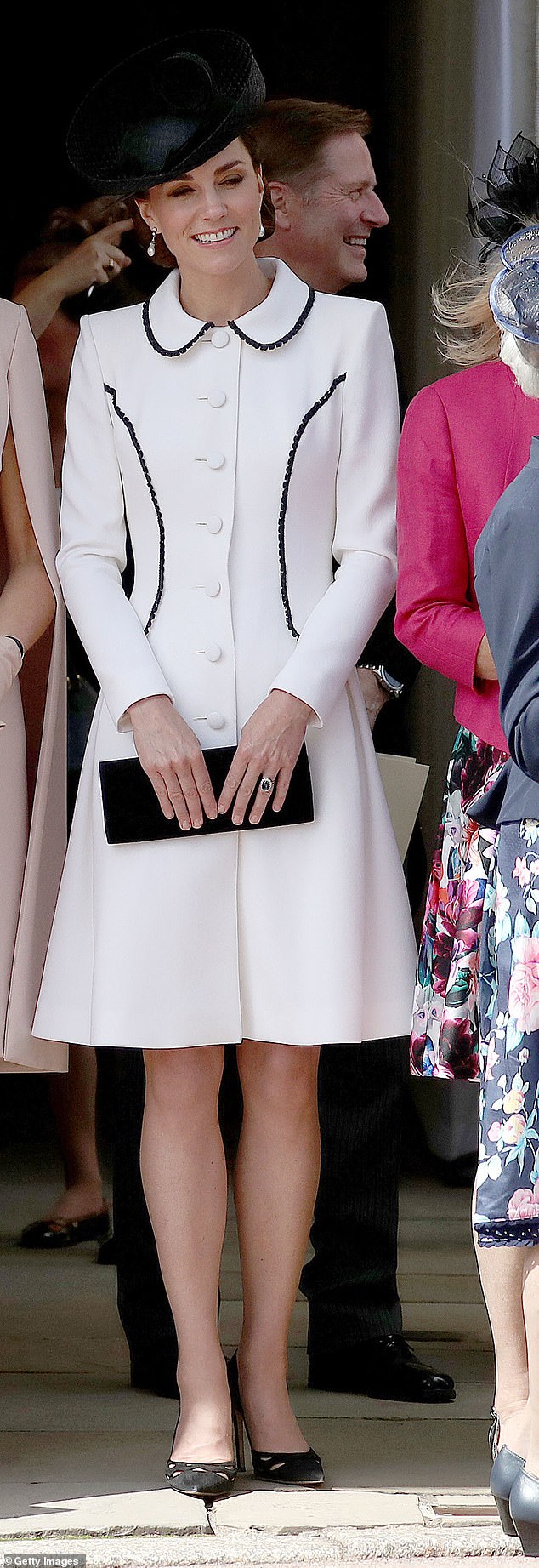 وأكملت "كيت" إطلالتها الخمسينية بأقراط مُتدلية من اللؤلؤ تعود لحمالتها الراحلة، واعتمرت قبعة سوداء أنيقة من تصميم Lock and Co ، وزادت من طولها طولًا بانتعال حذاء ذي كعب عالٍ أسود من العلامة التجارية الفرنسية "برادا" بقيمة 600 جنيه استرليني.