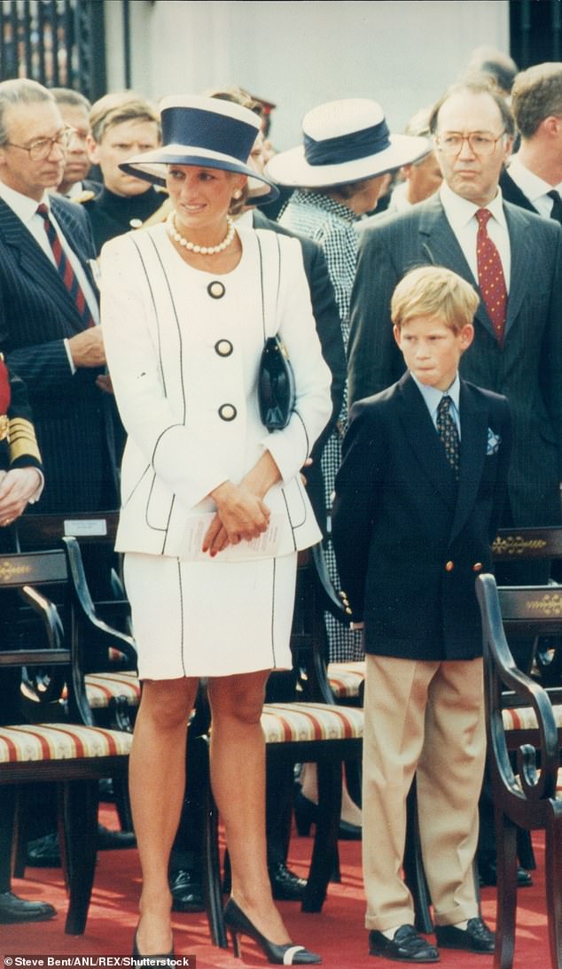 ويمكننا ملاحظة الشبه الواضح بين فستان "كيت" والطقم الذي ارتدته "ديانا" قبل 24 عامًا في يوم النصر على اليابان، حيث تألقت الأخيرة مُرتديةً طقم أبيض مُزيَّن بخطوط سوداء وأزرار كبيرة باللونين الذهبي والأسود من توقيع مصمم الأزياء البريطاني " توماس ستاروفسكي".