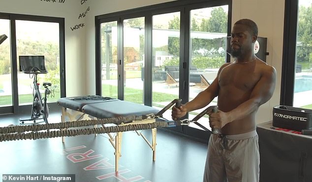 وكان كيفين يرتدي ملابس سوداء بالكامل بينما كان يقف بجانب سيارته الجديدة ولم يكن لديه أي صعوبة واضحة في المشي أو حمل أكياس الطعام.