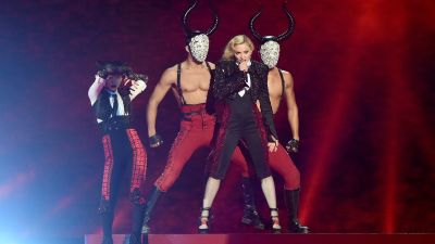 تعرضت أيقونة البوب لموقف محرج ومؤلم أيضًا أثناء أدائها على المسرح في حفل توزيع جوائز BRIT عام 2015، حيث علق طرف الكاب الذي كانت ترتديه بزينة رأس أحد الراقصين، مما أدى إلى سحبه وسقوطها عن المسرح، ولكنها عادت لتكمل الاستعراض وكأن شيئًا لم يكن.