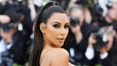 ظهرت كيم في شوارع كاليفورنيا بإطلالة متألقة، حيث ارتدت بنطالًا أورجوانيًا جلديًا ضيقًا، نسّقته مع بلوزة كبيرة من نفس اللون، كتبت عليها عبارة "الروح المقدسة".