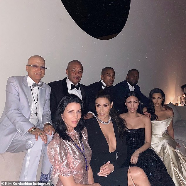 وفي صورة ثانية، كانت كيم بجانب مجموعة من المشاهير بالإضافة إلى زوجها كاني ويست.