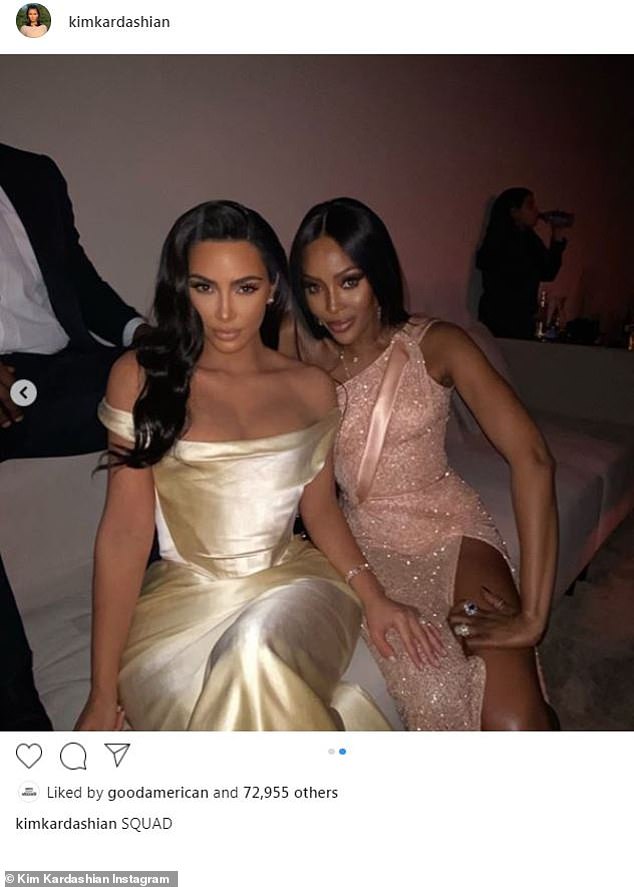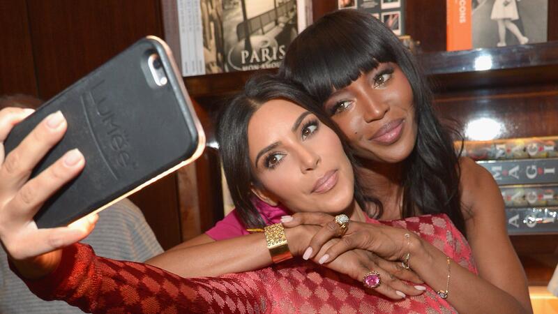 وظهر كل من كيم وناعومي في حالة جيدة الآن بعد اتهام نجمة الواقع بنسخ وتقليد مظهرها؛ ومن بين المرات العديدة التي ارتدت فيها كيم ملابس متطابقة مع نعومي كانت في مايو، عندما صممت بدلة سوداء الشيفون تشبه تمامًا مثل تلك التي ارتدتها عارضة الأزياء في عام 1991.
