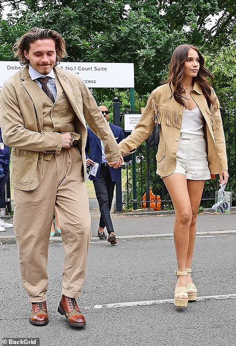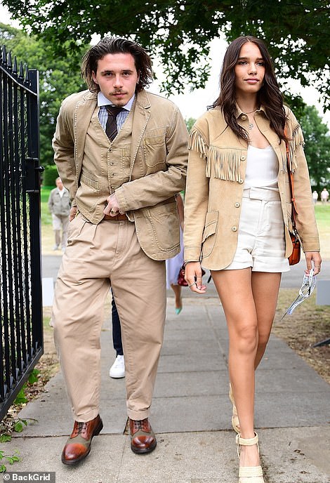 ويبدو أن بروكلين بذل قصارى جهده ليبدو أنيقاً، ببذلته البيج المكوّنة من ثلاث قطع والتي نسّقها مع قميص مخطط، إلا أنه لم يكن بمستوى أناقة صديقته التي ارتدت شورت أبيض مطابقًا للبلوزة، نسّقتها مع جاكيت بيج طويل.
