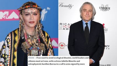 انضمت مغنية البوب العالمية مادونا والممثل الأمريكي روبرت دي نيرو إلى مجموعة من المشاهير والعلماء الفائزين بجائزة نوبل في المطالبة بتغيير اقتصادي وثقافي عالمي لتجنب كارثة بيئية أخرى مثل جائحة انتشار فيروس COVID-19.