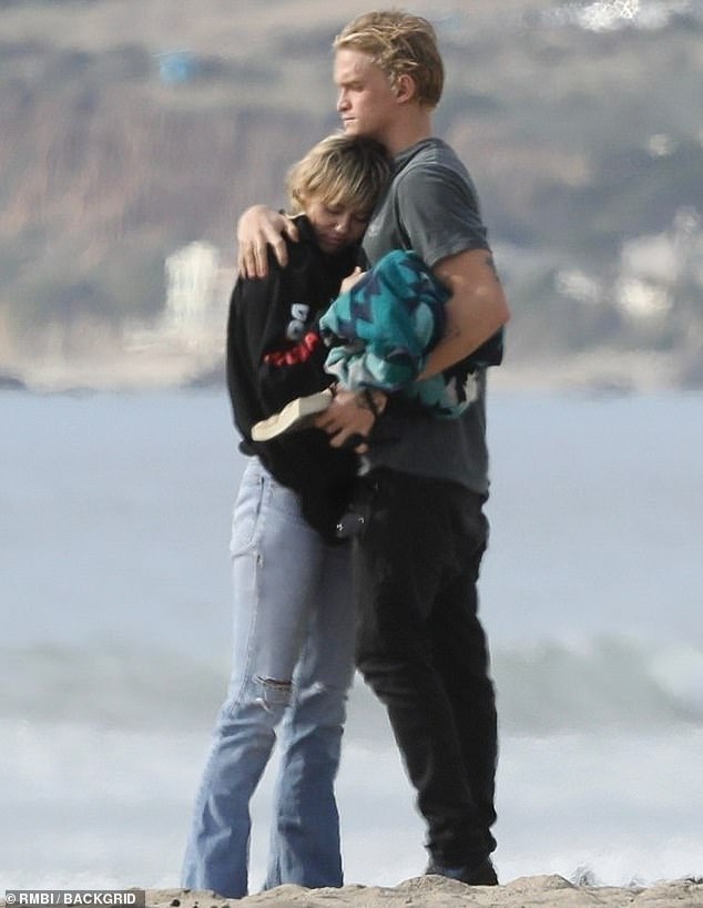 شوهدت النجمة "مايلي سايريس" برفقة حبيبها كودي سيمبسون في نزهة شاطئية في ماليبو يوم الاثنين الماضي.